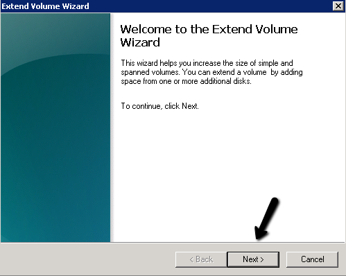 Click next to commence using the Extend Volume Wizard. On the second screen, check or set the amount of space you want to